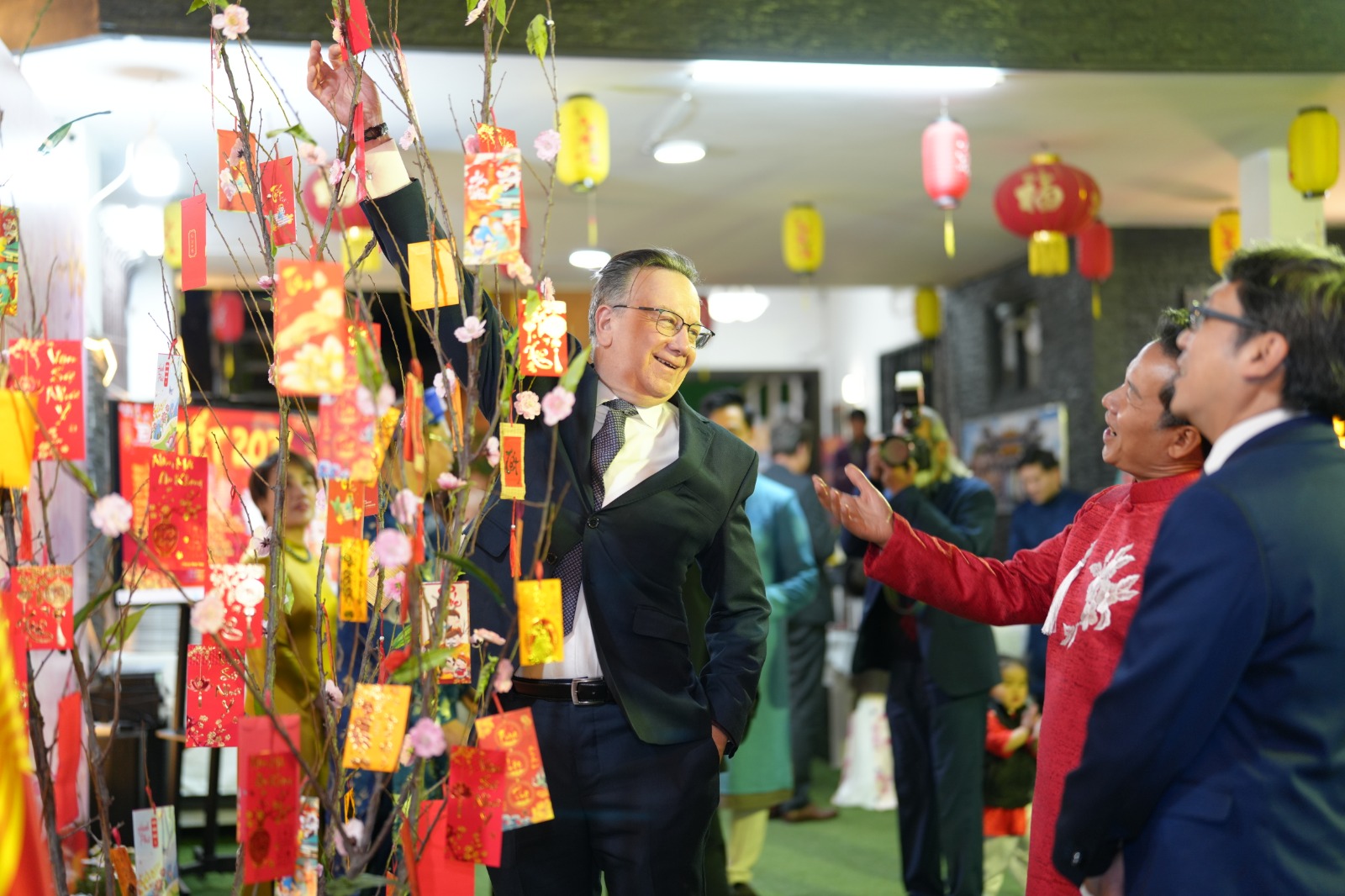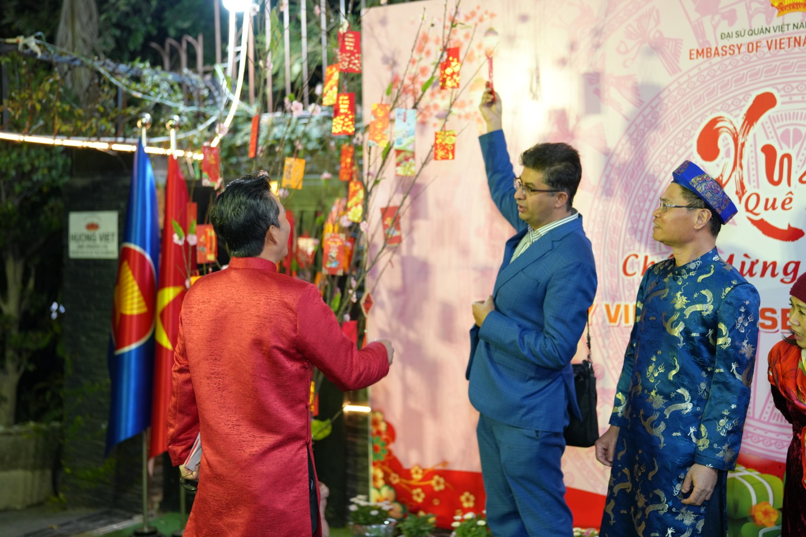 1. Hình ảnh quan khách hái lộc lì xì đầu năm